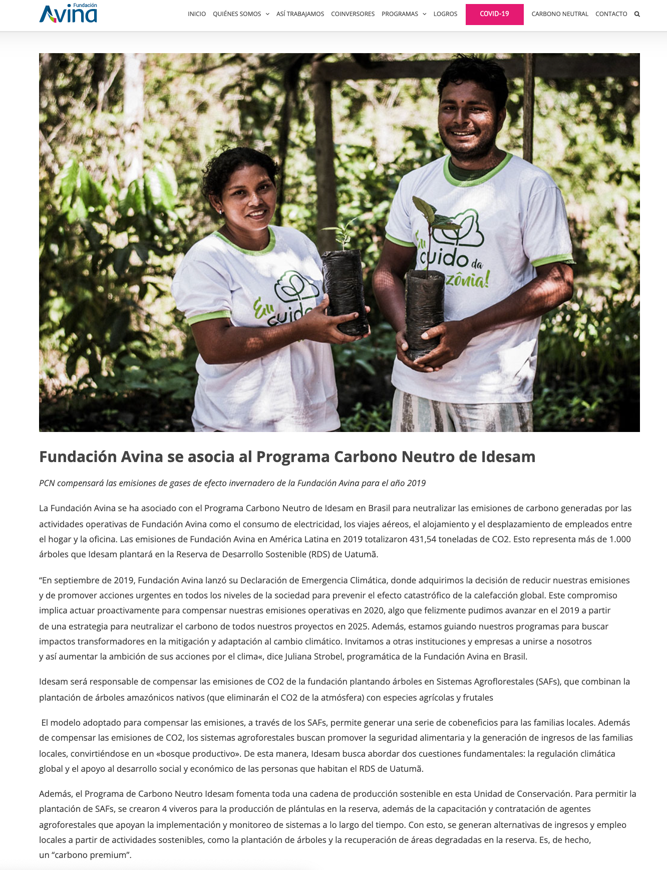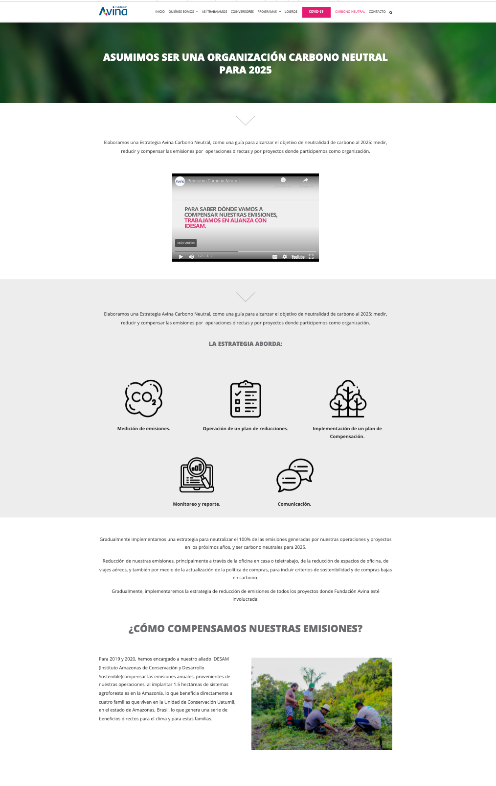Sección en la página web de la página donde da conocer su propósito de ser una organización carbono neutral para el 2025.